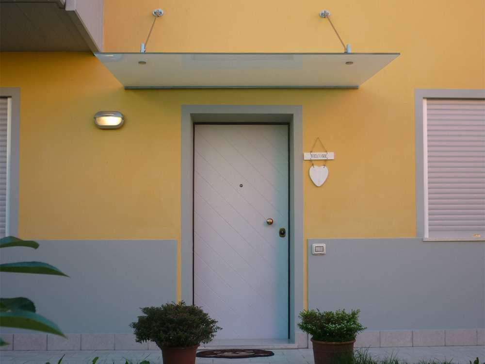 Riparano dall’acqua e dal sole, valorizzando l’ingresso dell’edificio.